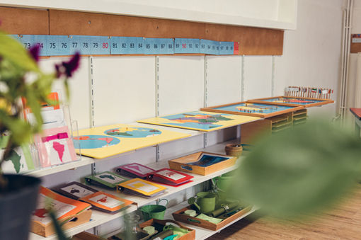 La classe est organisée autour de 4 aires de développement : aire de vie pratique, aire de vie sensorielle, aires de mathématiques et aires du langage.